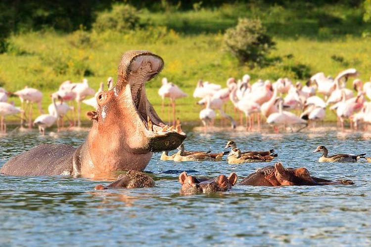 Le lac Nakuru, un petit lac alcalin peu profond (il varie de 5 à 30 kilomètres carrés) en bordure de la ville de Nakuru, se trouve à environ 160 kilomètres au nord de Nairobi. Il peut donc être visité en une journée depuis la capitale ou plus vraisemblablement dans le cadre d'un circuit passant par le Masai Mara ou le lac Baringo et vers l'est jusqu'à Samburu. Le lac est mondialement connu comme le lieu du plus grand spectacle d'oiseaux sur terre - des myriades de flamants roses fuschia dont le nombre est légion, souvent plus d'un million peut-être deux. Le parc compte maintenant plus de 25 rhinocéros, l'une des plus grandes concentrations du pays, donc les chances de repérer ces survivants sont bonnes. Il y a aussi un certain nombre de girafes de Rothschild, à nouveau transférées pour la sécurité de l'ouest du Kenya à partir de 1977. Waterbuck sont très communs et les deux espèces du Kenya se trouvent ici. Parmi les prédateurs figurent le lion et le léopard, ces derniers étant beaucoup plus fréquents ces derniers temps